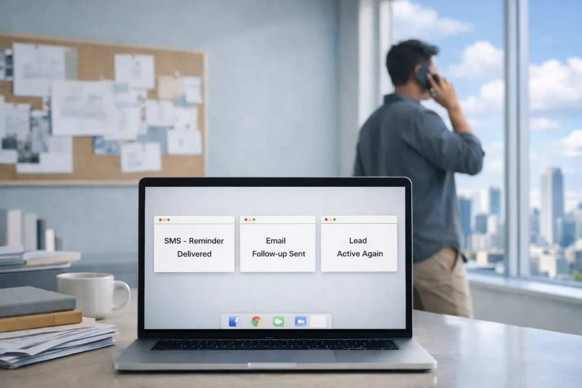 AI responds instantly to texts, Instagram DMs, website inquiries, and answers questions, follows up, and books or qualifies leads automatically.
